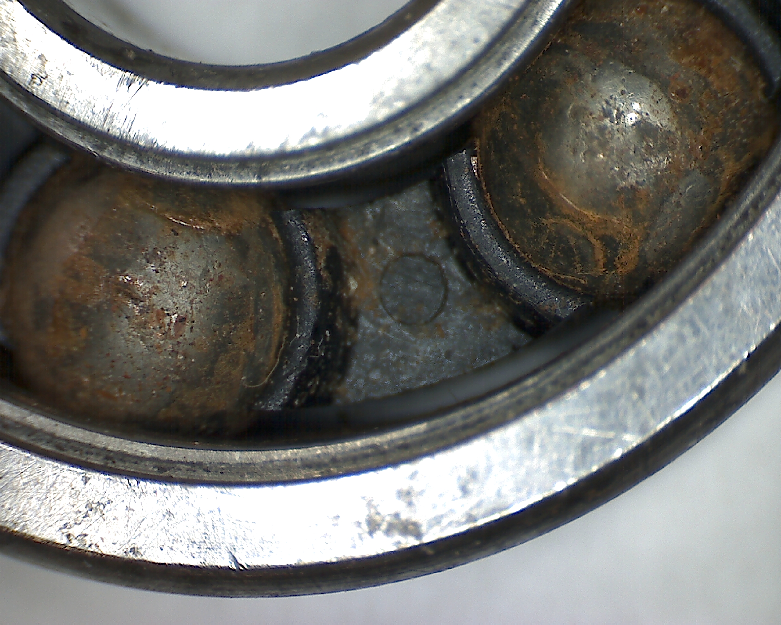 Schmutz dringt in das Lager ein, wirkt wie Schmirgel und zerstört die feine glatte, hochglänzende Oberfläche der Kugeln und Laufbahnen. Auch hier hält das gefettete Lager etwas länger stand, da der erste Schmutz direkt am Anfang, am überschüssigen Fett kleben bleibt und noch nicht direkt an die Kugeln gerät. Sobald die Laufbahn oder Kugeln beschädigt sind ist Schluss mit ruhigem, lautlosem und leichtem Lauf, die Zerstörung hat begonnen und Marathon-Bestzeiten sind passé.